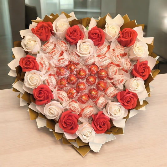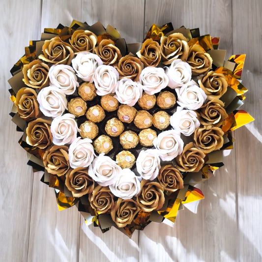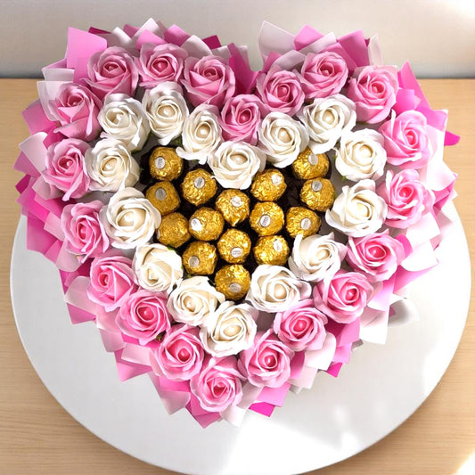 Luxuriöser Herzförmiger Schokoladen- & Seifenrosenstrauß – Ferrero Rocher Geschenk