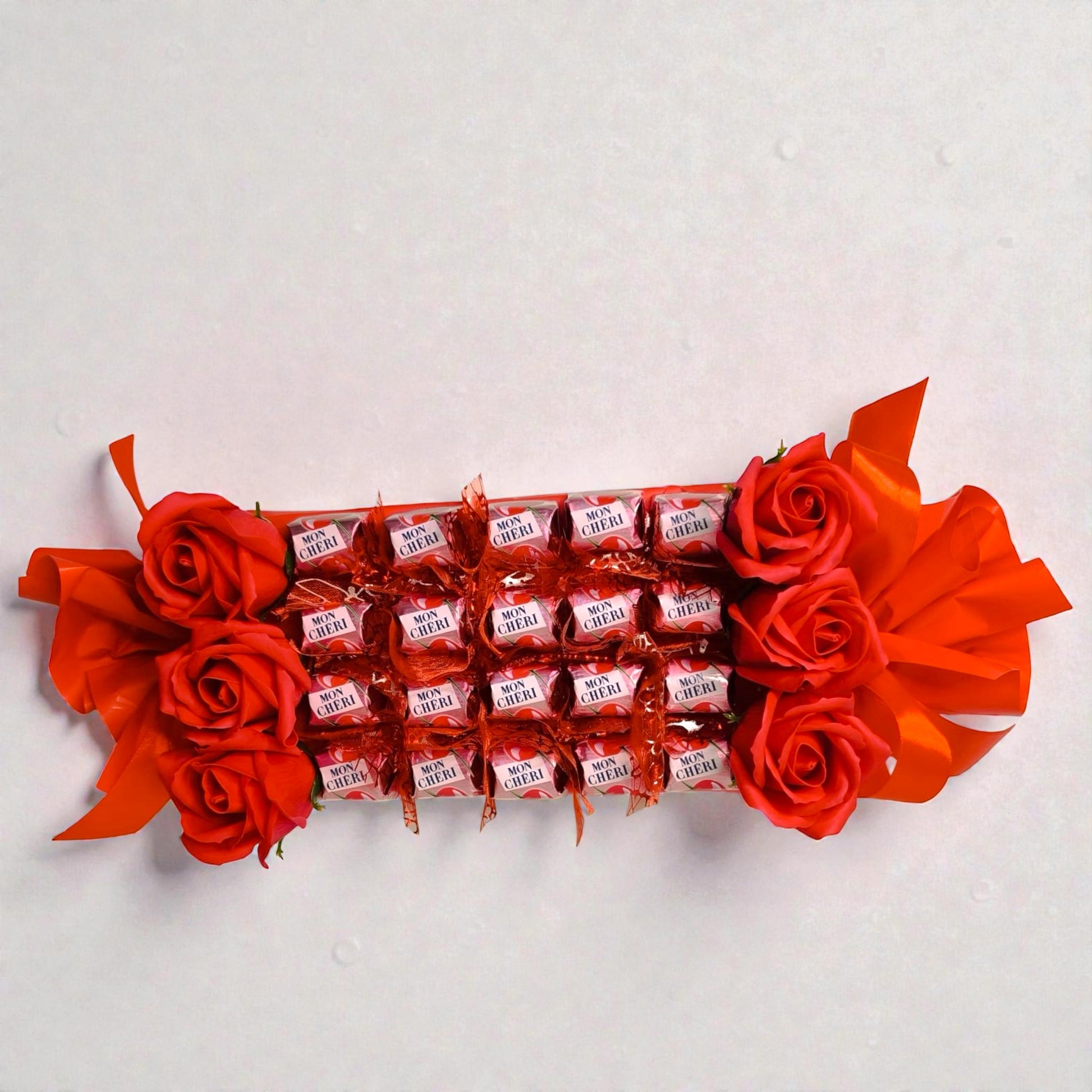 Dieses Bonbon-Geschenk mit Mon Chéri ist eine stilvolle und besondere Geschenkidee für viele Anlässe. Die beliebten Mon-Chéri-Pralinen mit feiner Kirschlikör-Note werden in liebevoller Handarbeit zu einer dekorativen Bonbonform arrangiert und machen dieses Süßigkeiten-Geschenk zu einem echten Blickfang.
