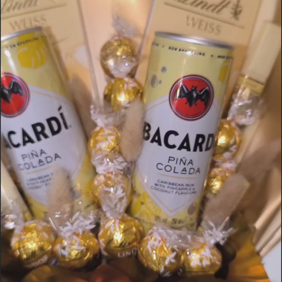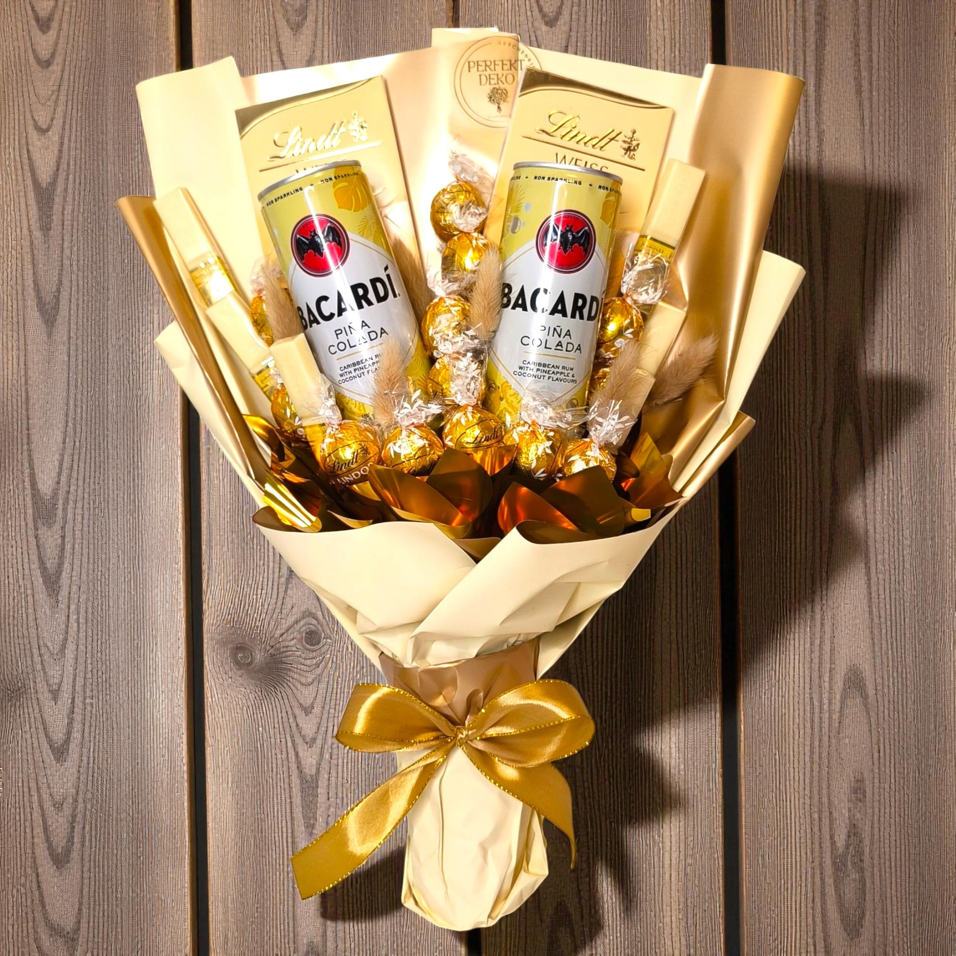 Genussstrauß "Bacardi" – Luxuriöses Geschenk mit Lindt, Merci & Bacardi Pina Colada