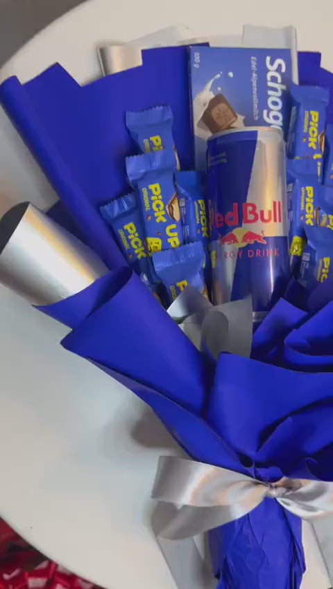 Energetischer Genussstrauß mit Pick Up, Schogetten & Red Bull – Belebendes Geschenk für aktive Genießer